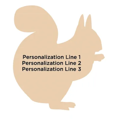 This personalized donor squirrel measures 5.5 in x 4.5 in and is light sand in color. Three lines of text with a maximum of 22 characters per line including spaces are included.