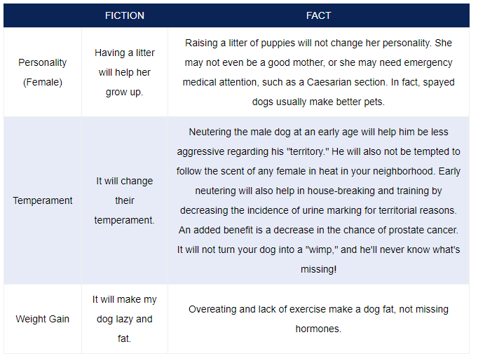 Note: Talk to your veterinarian about the benefits of spaying and neutering as part of an overall wellness plan for your four-legged loved one. You will be glad you did.